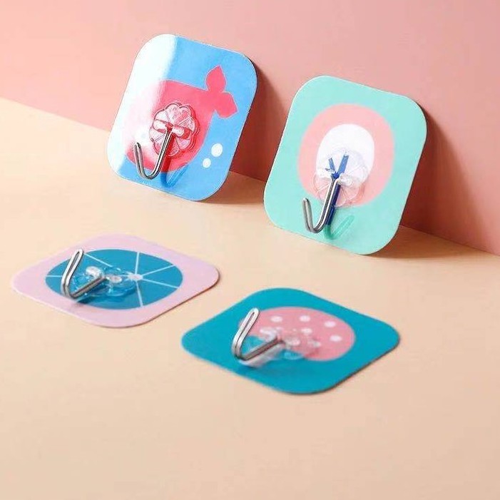 [1.000đ] Móc dán tường siêu dính trong suốt chịu lực 10kg - Miếng dán tường trong suốt chịu lực có móc treo 6x6cm